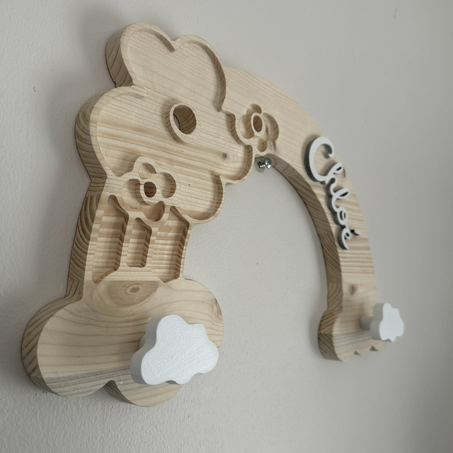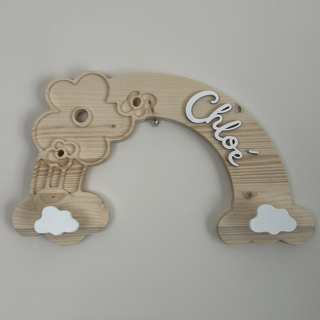 Créez un porte-manteau unique, entièrement personnalisé selon vos envies ! Fabriqué en bois, chaque modèle est une pièce originale de 40 cm de large. Vous pouvez y ajouter un prénom pour une touche personnelle.