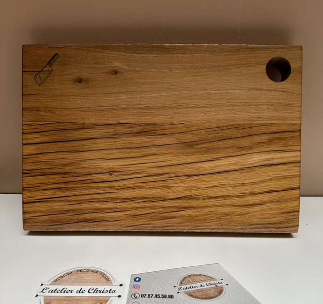 Petite planche à découper de type "billot" en hêtre .Mesurant 33 cm x 23 cm x 3 cm, cette planche allie fonctionnalité et esthétique. Avec sa finition à l'huile végétale de tung, elle offre une durabilité exceptionnelle tout en préservant la beauté naturelle du bois. De plus, nous proposons une personnalisation sur mesure avec notre graveur laser, sur demande. Ajoutez une touche unique à votre planche à découper et faites-en un véritable objet d'art culinaire.